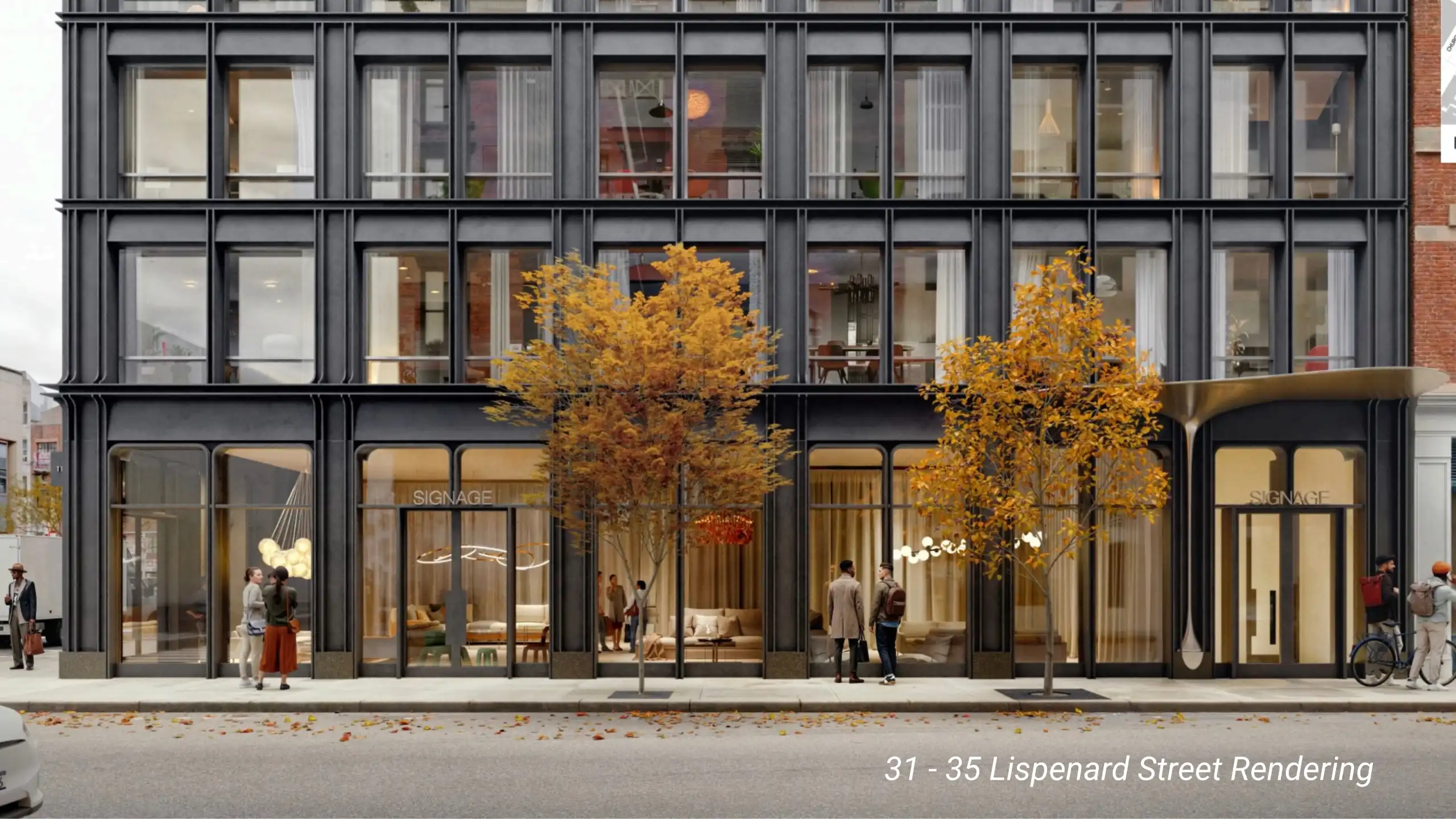Architecturally, the proposal appears to be walking the line between contemporary and contextual. The design has been described with dark metal cladding, granite at the base, generous glazing at street level, and proportions intended to respond to neighboring historic buildings. Whether neighbors love it or not, the intent is clear: this is not trying to be a glassy outsider dropped into the district. It is trying, at least in its presentation, to speak to Tribeca’s cast-iron rhythm in a newer language.